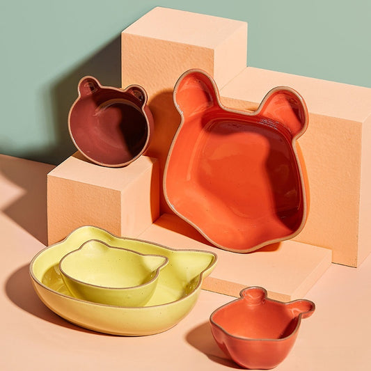 Cartoon Children's Dinner Plate, Ceramic Plate, Dish, Household Snack Bowl, Creative Cute Fruit Plate, Saucer, Soy Sauce Dish