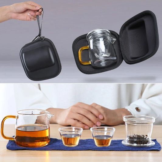 yuntasty coffee and tea sets glass teapot gaiwan teacups portable travel tea set drinkware