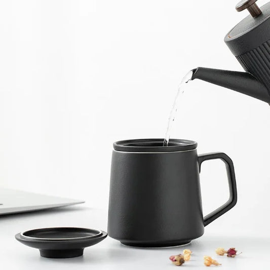 yuntasty Ceramic Tea Cup with Lid High-grade Tea Mug with Infuser Coffee Mug