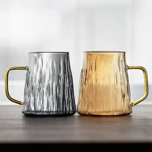 yuntasty Glass Glacier Design Mug Big Coffee Mug with Handle Nordic Style Tea Mug 420 ml