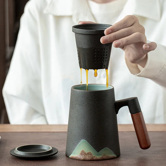 yuntasty mountain design ceramic tea mugs with filter ceramic coffee cup chinese tea cup 400ml