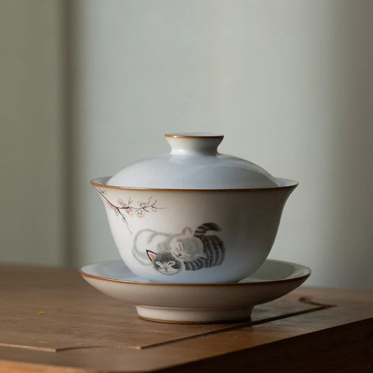 yuntasty ceramic gaiwan cute cat porcelain tureen 160ml