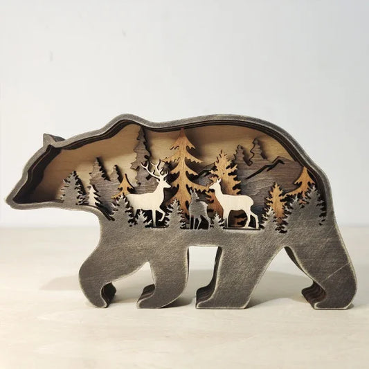 yuntasty Christmas Wood Craft Creative Forest Animals Elk Ornament Deer Brown Bear Decoration