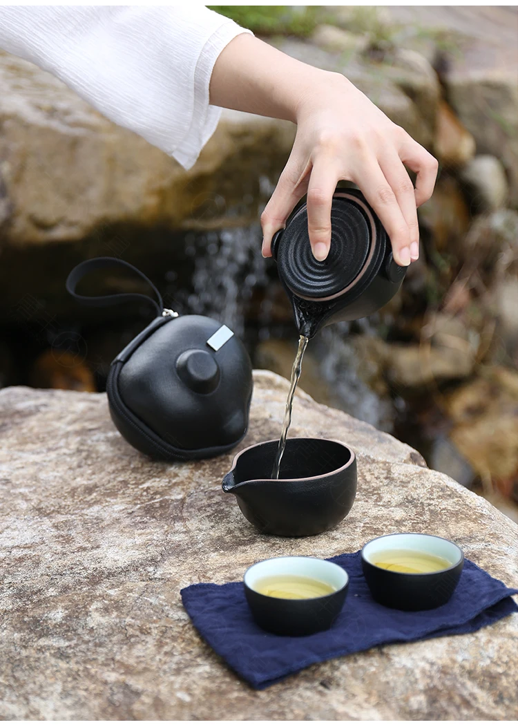 yuntasty black crockery ceramic teapot teacups a tea sets portable travel tea sets with travel bag