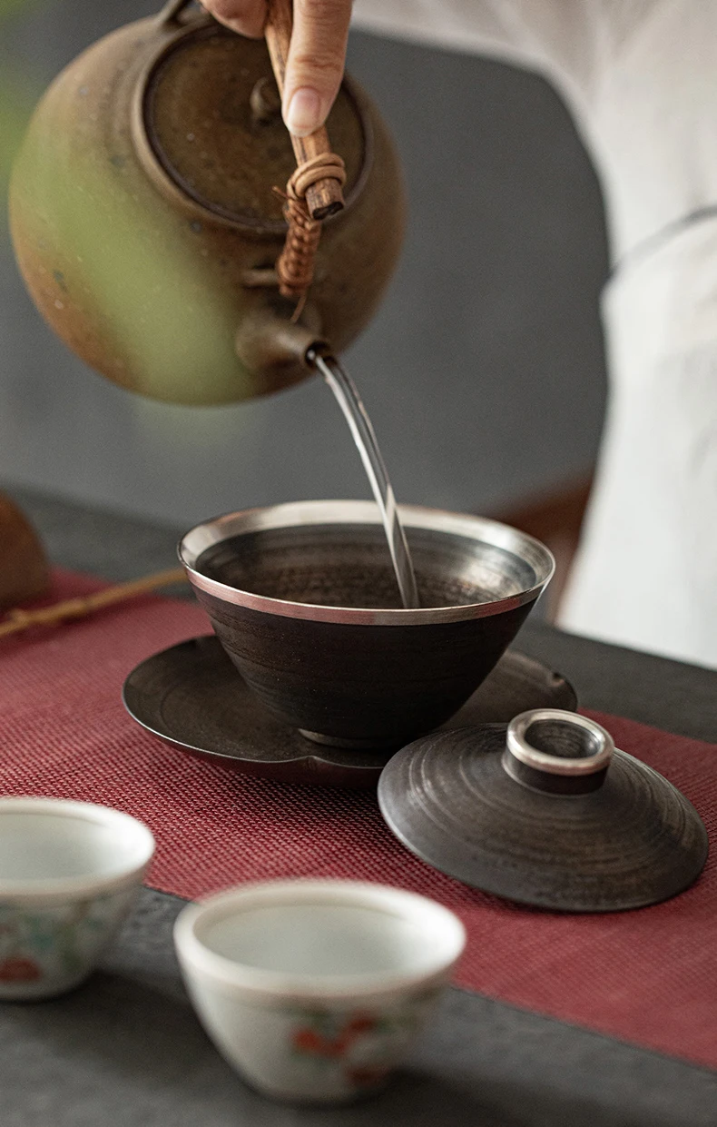 yuntasty ceramic gaiwan with saucer silver edge chinese kung fu tea set 150ml